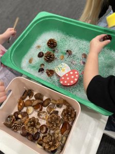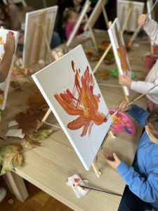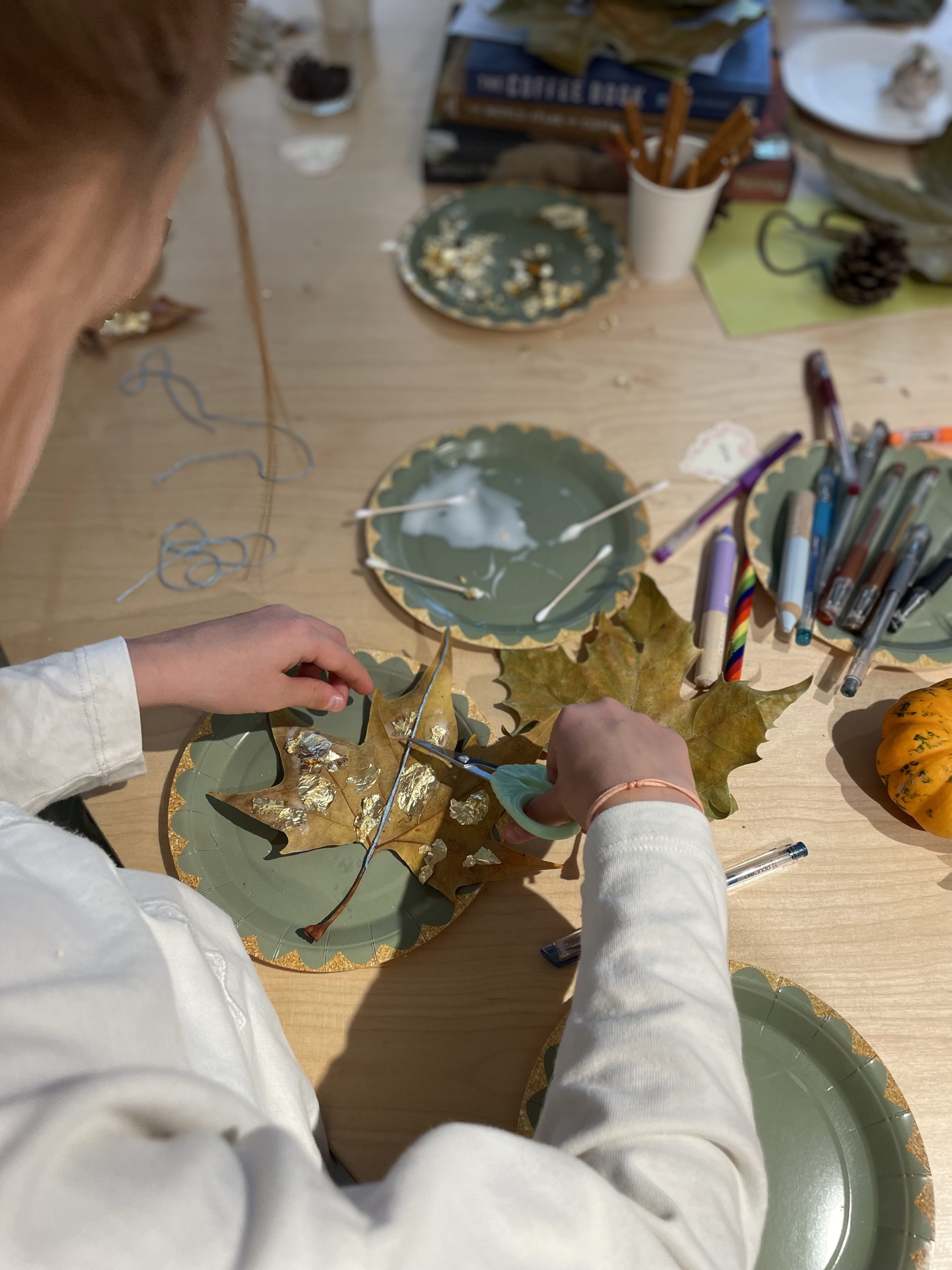 U ovoj toploj jesenskoj aktivnosti istražujemo teksture i boje kroz zanimljivu kombinaciju prirodnih materijala i mekanih vunenih niti. Djeca i roditelji zajedno provlače trakice vune kroz tekuće ljepilo, a zatim ih pažljivo polažu