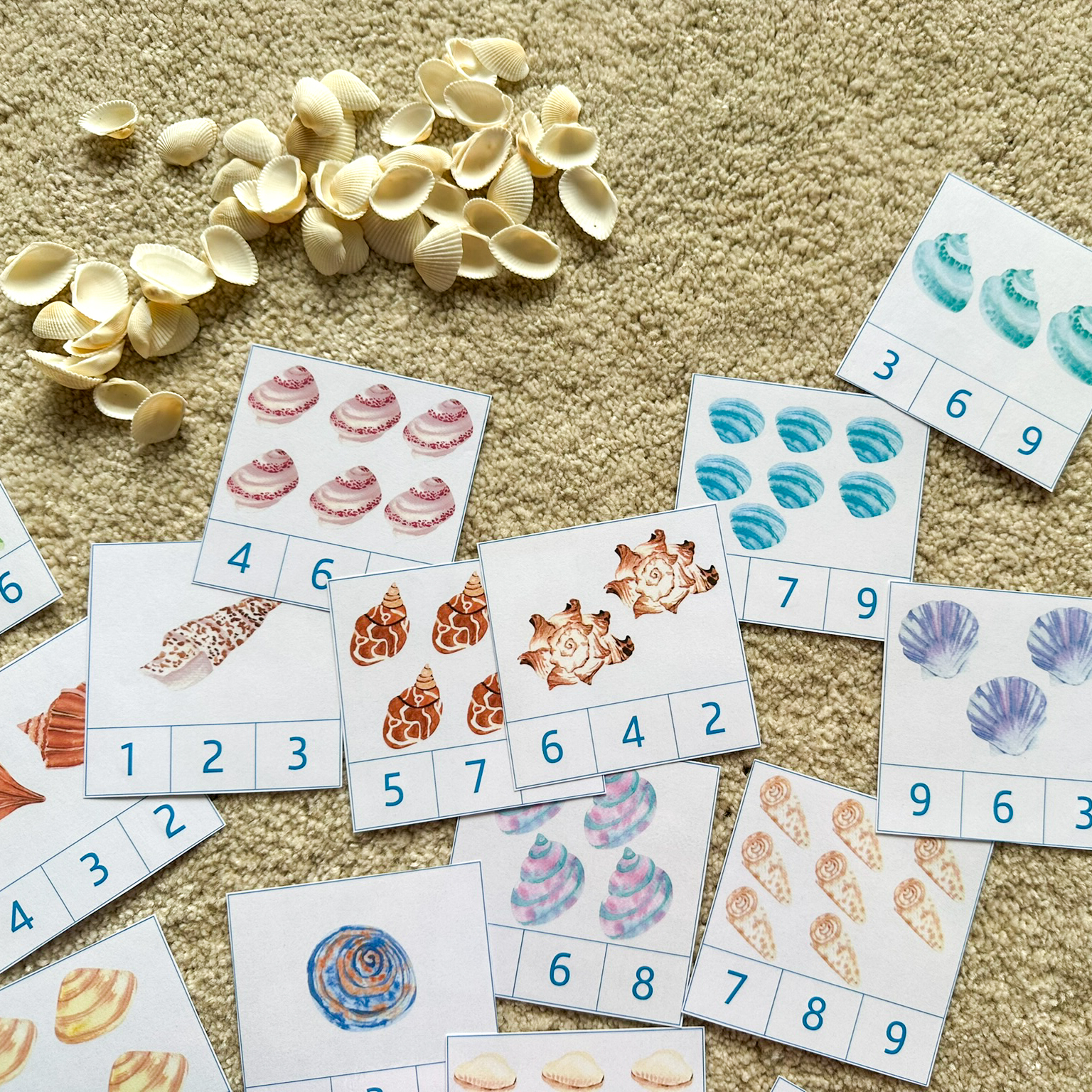 - Uzmi jednu karticu i prebroji školjke koje se nalaze na njoj – jednu po jednu.