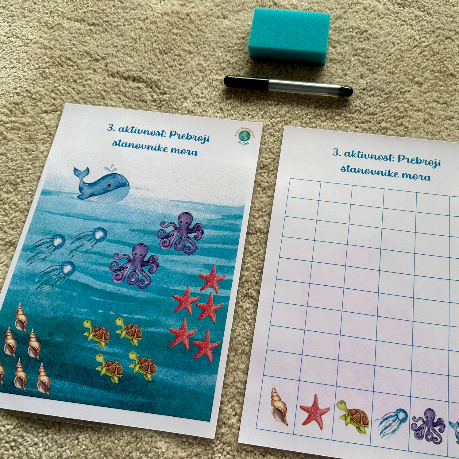 - Kada dijete završi, zajedno možete usporediti kojih je stanovnika u moru najviše, a kojih najmanje na temelju ispunjene tablice.