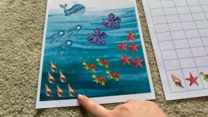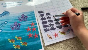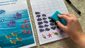 - Zajedno donesite vježbu do radnog mjesta. Uzmi jedan prikaz mora i prstom kreni brojati školjke.